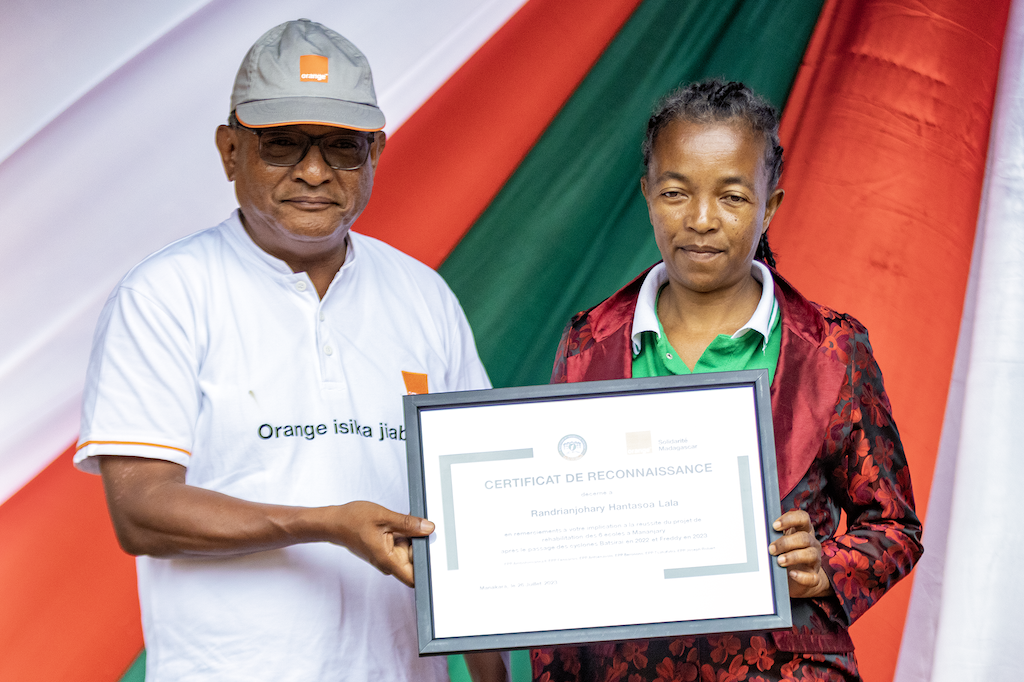 Ces écoles ont été ravagées par le Cyclone Batsirai en 2022, privant plus de 4.000 élèves d’infrastructures d’éducation décentes. Dans le cadre de ses engagements en faveur de l’égalité des chances, et en faveur de l’éducation, Orange Madagascar a tenu à contribuer à la réhabilitation de ces établissements scolaires. Son association humanitaire, Orange Solidarité Madagascar, a été en charge du suivi des travaux de réhabilitation, avec le soutien financier de la Fondation Orange.