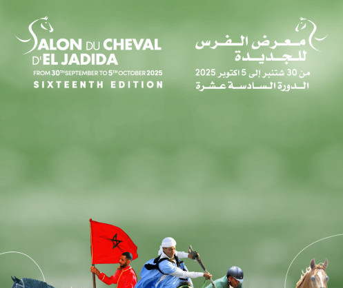 • الـدورة السادسـة عشـرة مـن معـرض الفـرس للجديدة مـن 30 شـتنبر إلـى 5 أكتوبـر 2025 تحـت شـعار: " العنايـة بالخيـل، رابطـة وصـل بـن ممارسـات الفروسـية "
