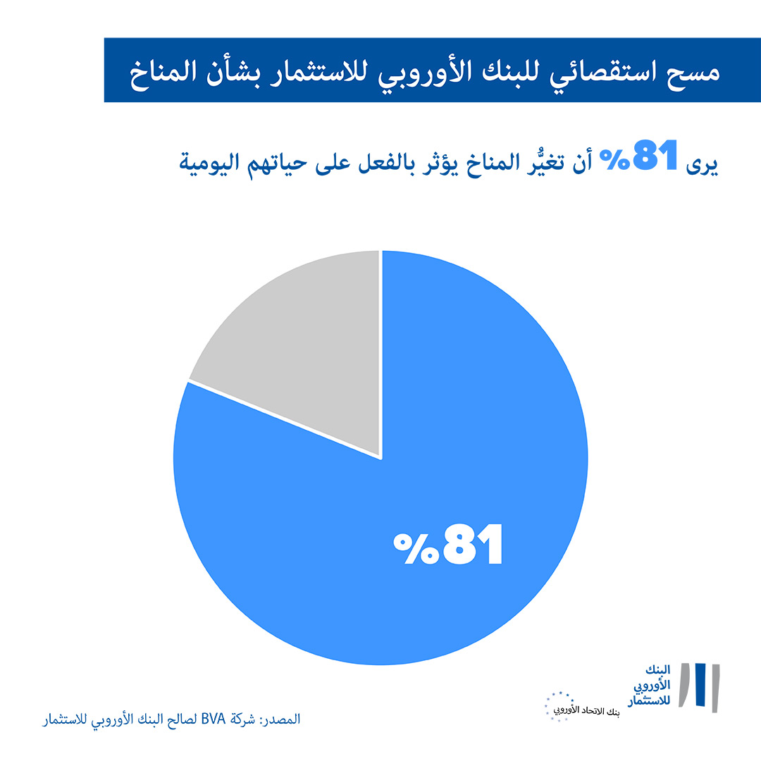 يهدف المسح الاستقصائي للبنك الأوروبي للاستثمار بشأن المناخ في نسخته الأفريقية والشرق أوسطية الأولى والذي أجري بالشراكة مع شركة BVA لأبحاث التسويق، إلى إثراء المناقشة الأوسع بشأن المواقف والتوقعات فيما يخص العمل المناخي.