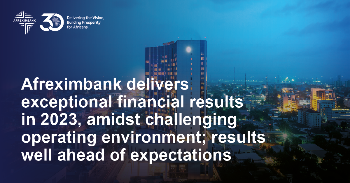 حقق البنك الأفريقي للتصدير والاستيراد نتائج مالية استثنائية في عام 2023، وسط بيئة عمل صعبة؛ كانت النتائج أعلى بكثير من التوقعات
