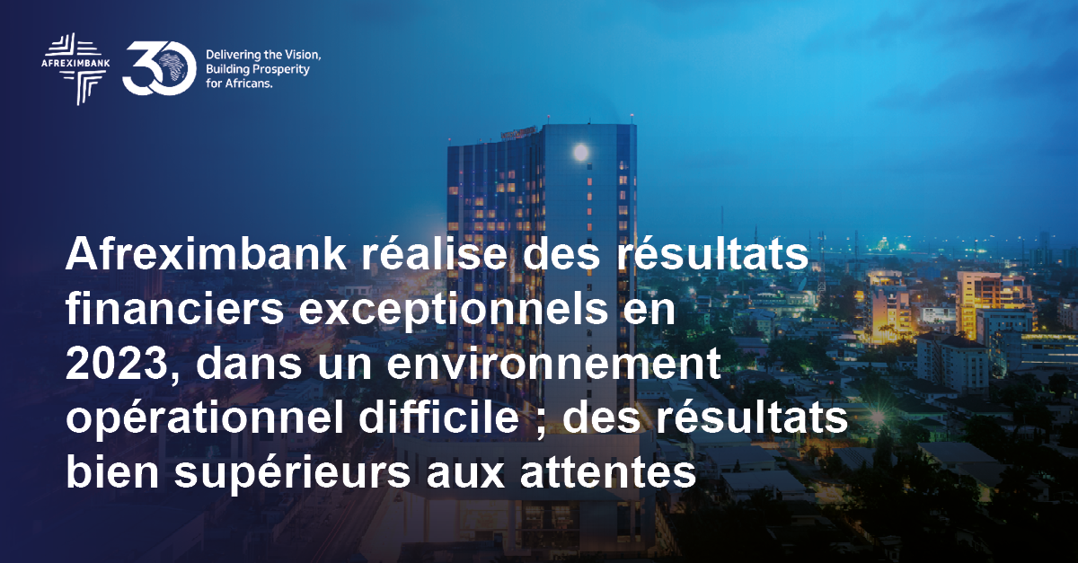 • حقق البنك الأفريقي للتصدير والاستيراد نتائج مالية استثنائية في عام 2023، وسط بيئة عمل صعبة؛ كانت النتائج أعلى بكثير من التوقعات (FR)
