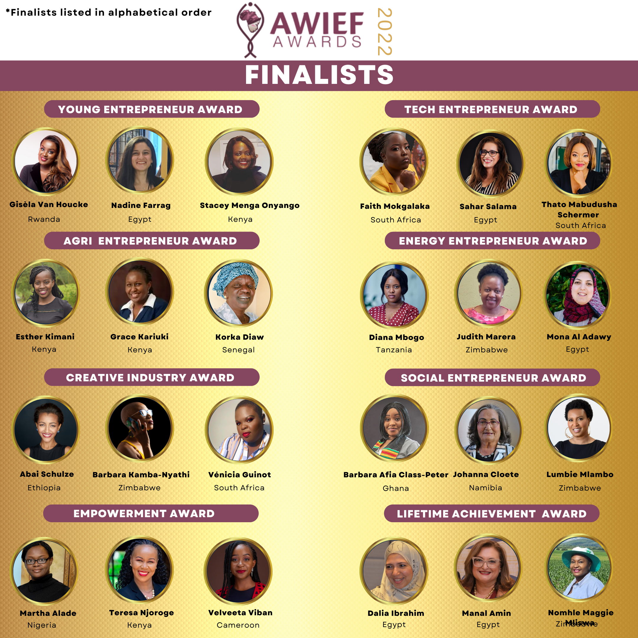 The finalists for the 2022 AWIEF Awards are (names in alphabetical order):