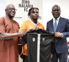 • (E-D) Dr Michael Adekunle Charles, CEO da RBM Partnership to End Malaria, Didi B, artista internacional e campeão do Zero Malaria FC, Pierre N’Gou Dimba, Ministro da Saúde e Higiene Pública da Costa do Marfim