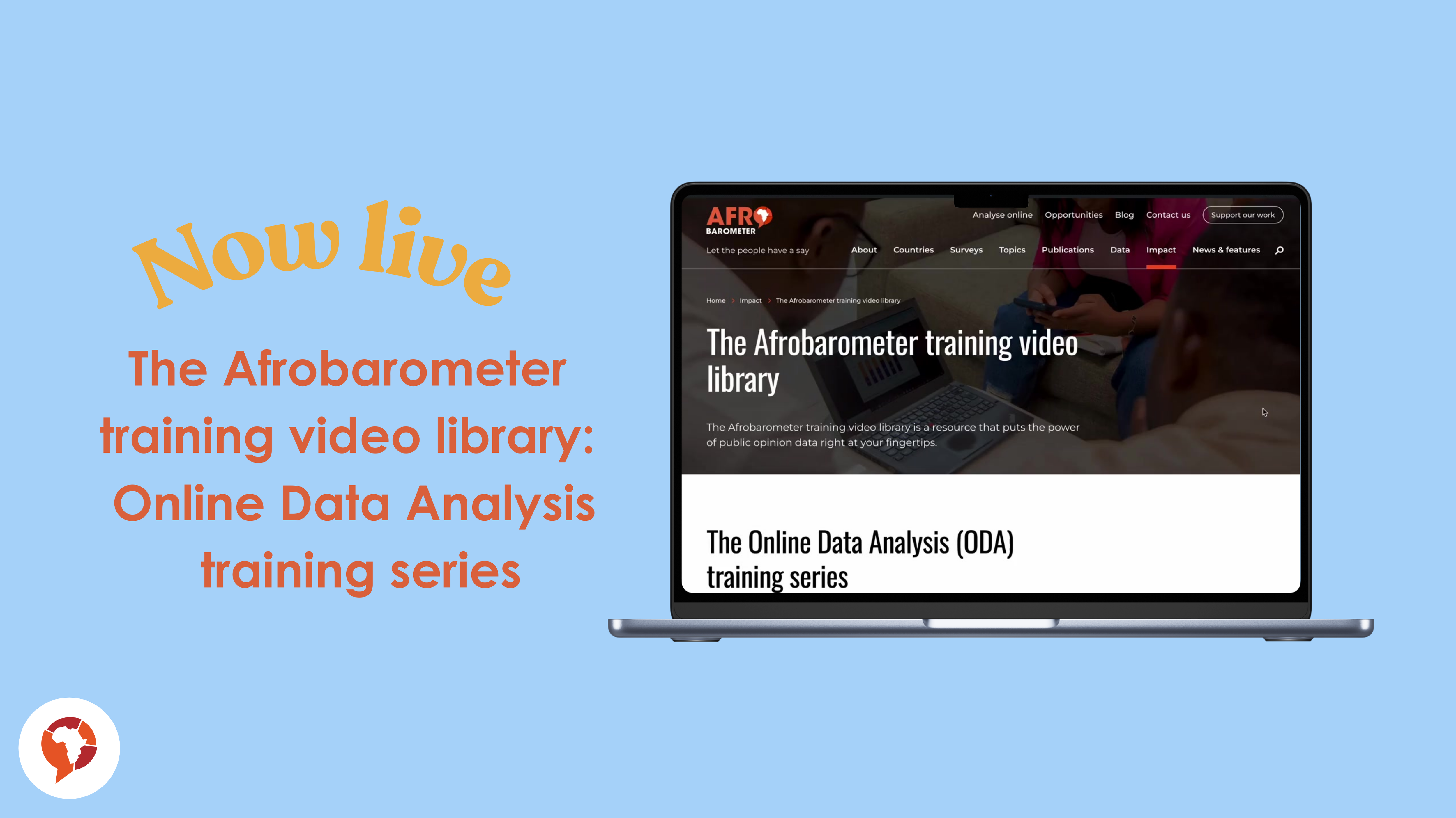 La bibliothèque propose un accompagnement étape par étape grâce à une série de courtes vidéos conviviales, montrant comment utiliser l'outil d'analyse de données en ligne (ODA) d'Afrobarometer pour analyser les données et créer des graphiques
