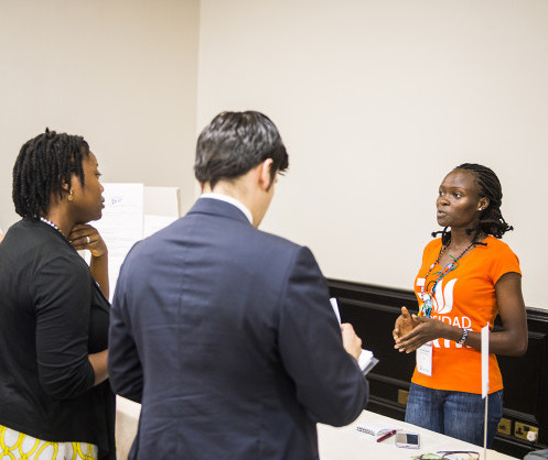 • Lucia Lebasha pitches STPI to judges at the Social Venture Challenge in Ghana. (Photo caption: Illume)