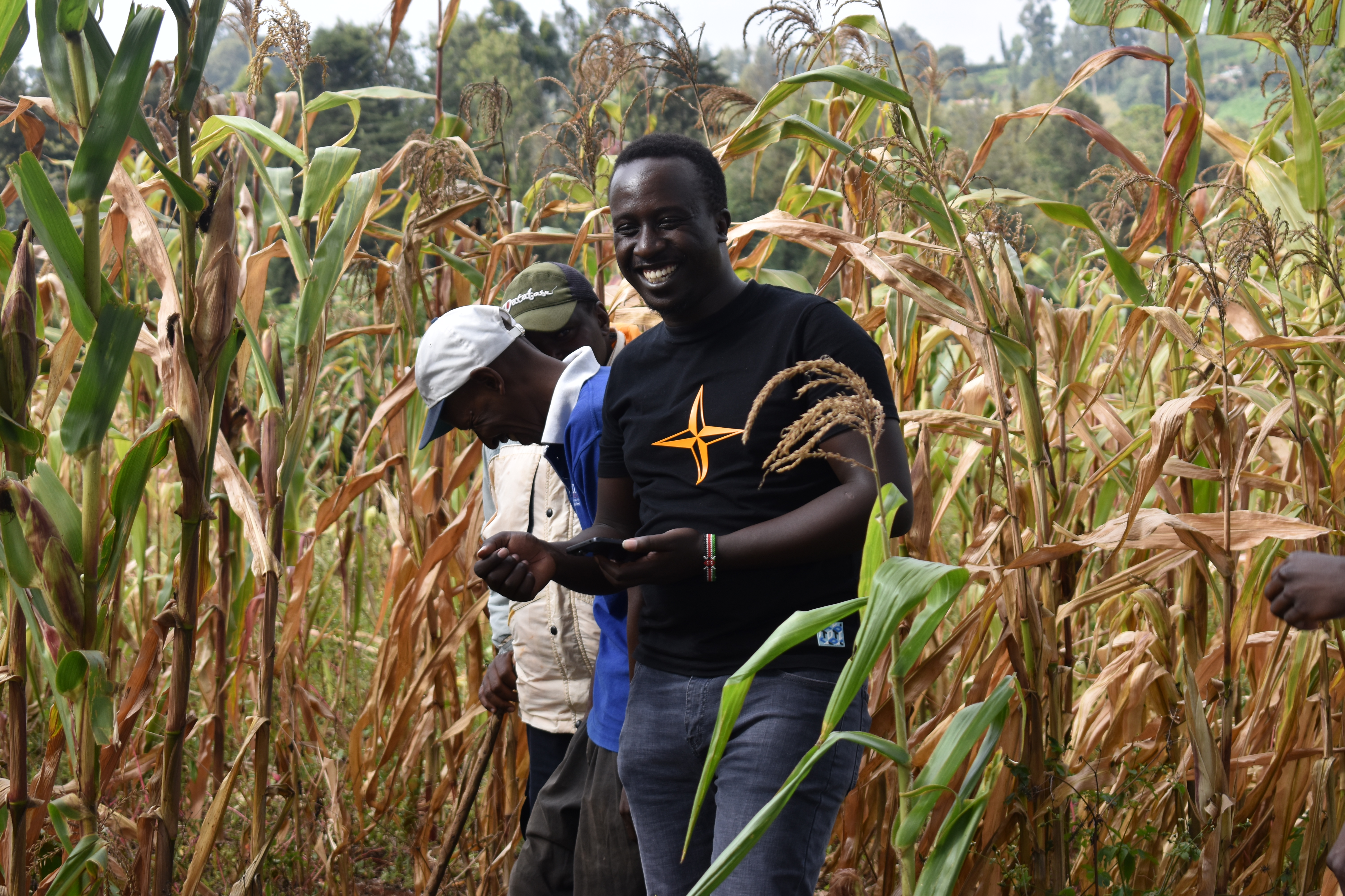 • Our Geospatial Analyst demonstrating to Mr. Martin, a Kenyan farmer, specific areas of his corn farm that were affected (1)