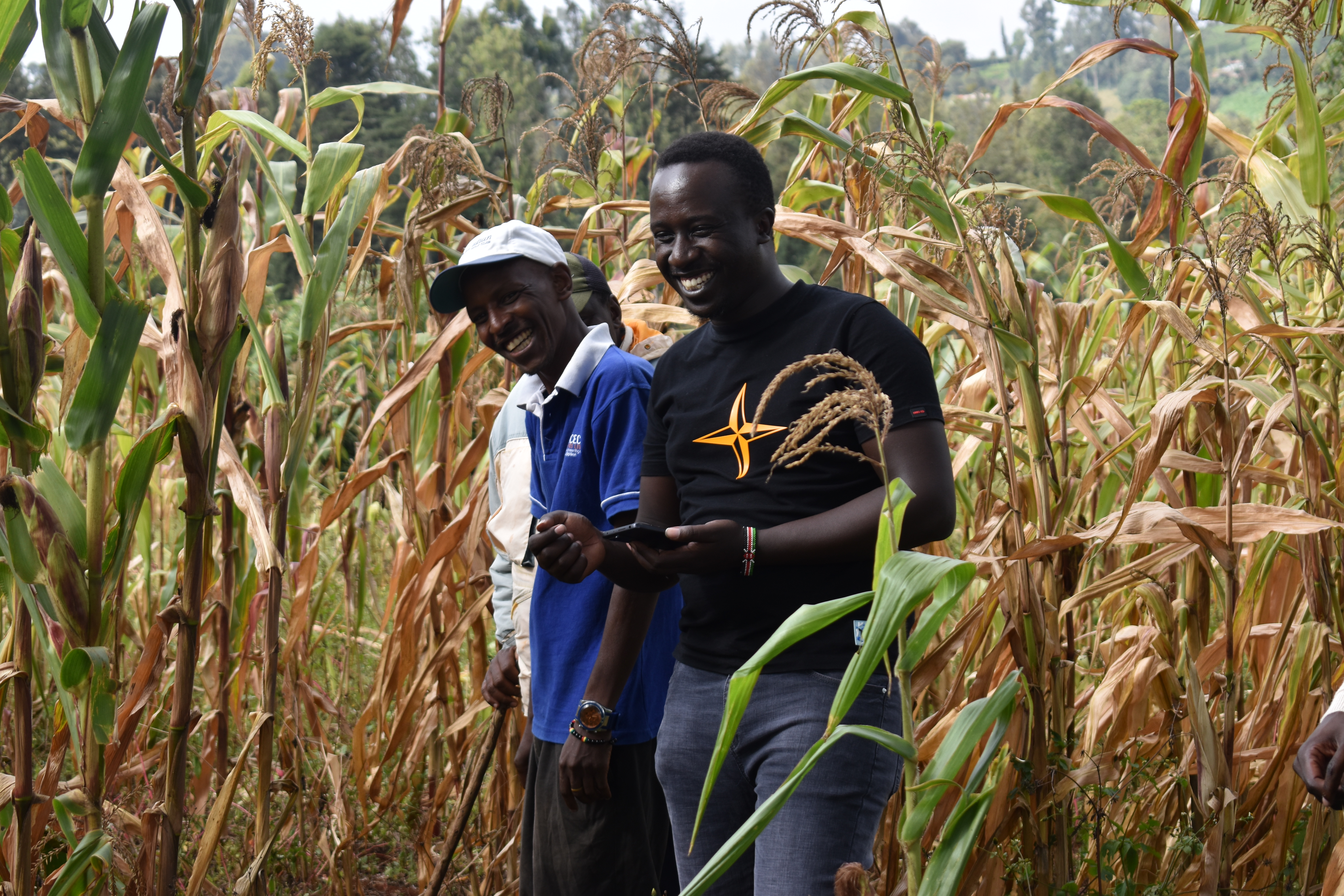 • Our Geospatial Analyst demonstrating to Mr. Martin, a Kenyan farmer, specific areas of his corn farm that were affected (2)