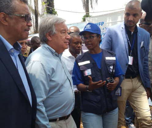 Accompagné, entre autres, de Jean-Pierre Lacroix, Secrétaire général adjoint et chef des opérations de maintien de la paix, de Leila Zerrougui, Représentante spéciale du Secrétaire général des Nations Unies en République démocratique du Congo, et du Dr Tedros Adhamon Ghebreyesus, directeur général de l'OMS, M. Guterres a tout d'abord rencontré divers représentants de la composante humanitaire (Organisation mondiale de la santé, Programme alimentaire mondiale, Unicef, ONG internationales telles Oxfam, Medair, Mercy Corps) qui lutte au quotidien pour tenter d'endiguer l'épidémie.