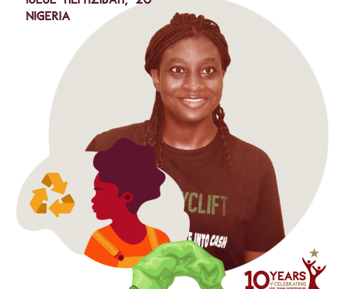 Ijeje Hephzibah, 20 ans, Nigéria : Co-fondatrice de Recyclift, une société de recyclage basée au Nigéria, dont l'activité se concentre uniquement sur le recyclage des bouteilles en plastique et des bouchons de bouteilles en plastique.