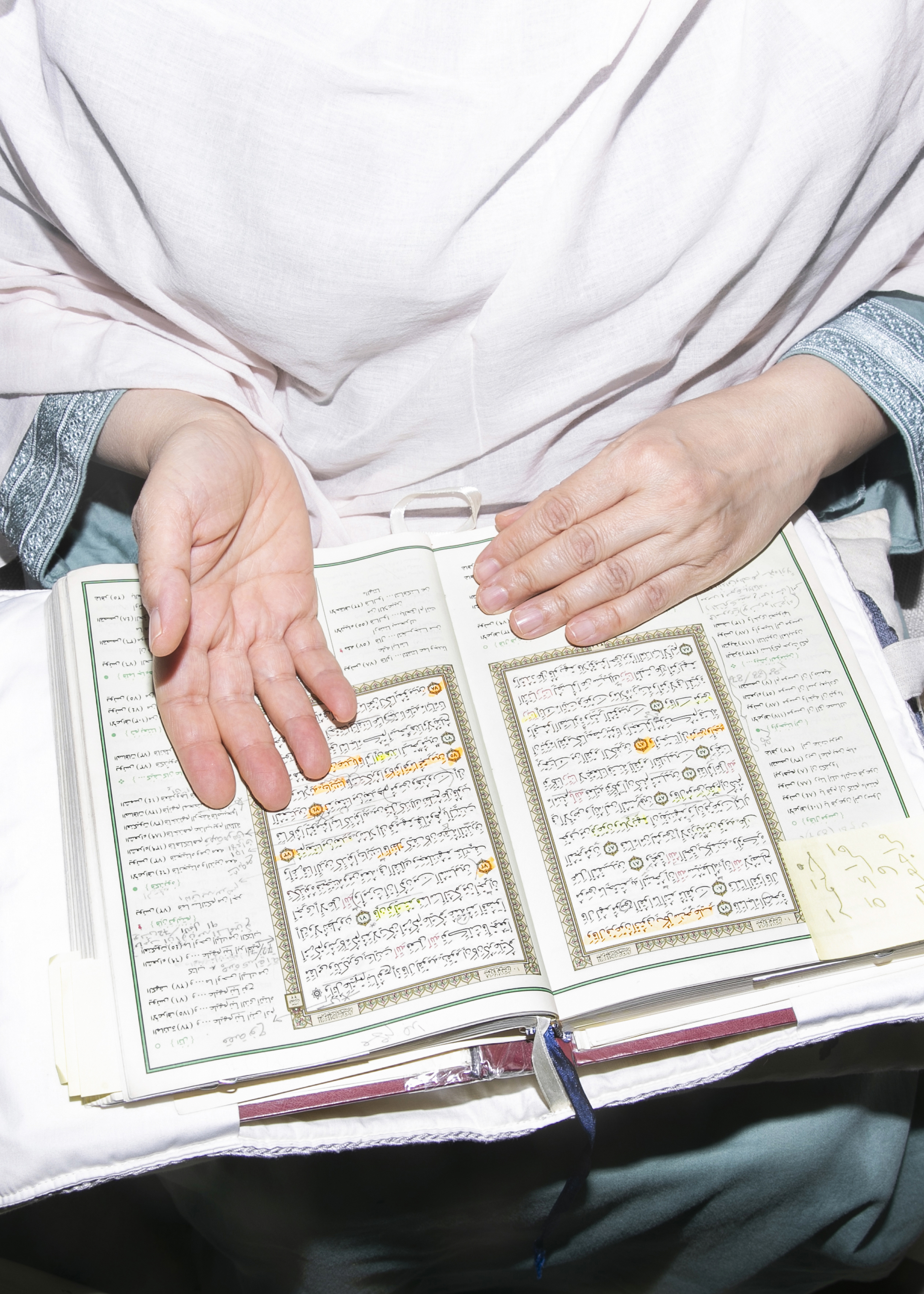 • الصور التي التقطتها المصورة الوثائقية ريم فلكناز بكاميرتها Canon EOS-1D X Mark II تُظهر صورة والدتها وهي تراجع كلمات القرآن الكريم، والأخرى تلقي نظرة من على بُعد على حفيدها حديث الولادة.