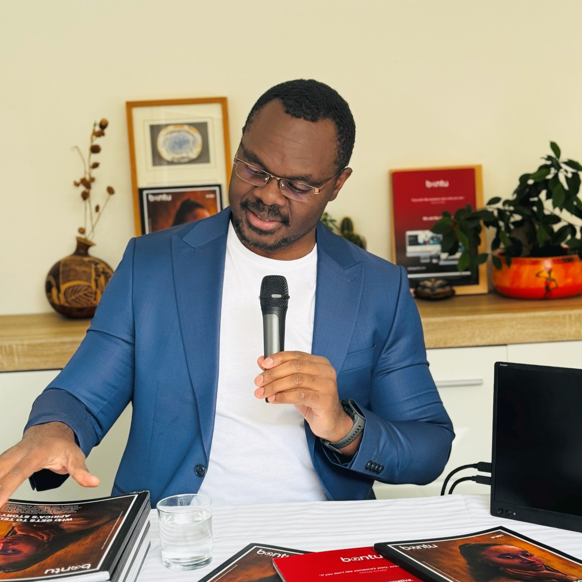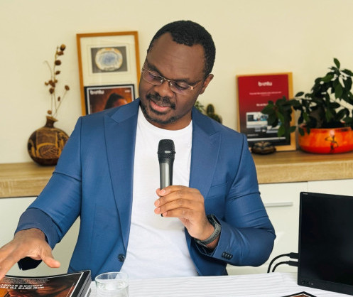 • Felix Tih, Editorial Director of Bantu Gazette, shares the vision behind the magazine during the soft launch event in Kigali
