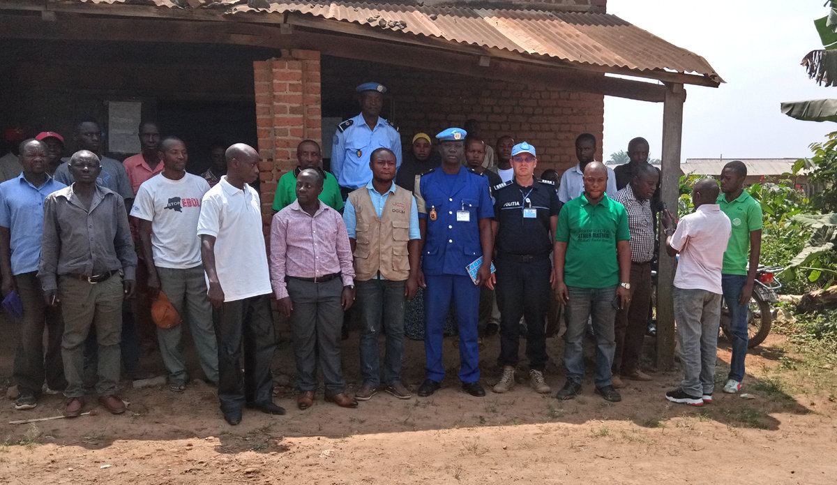 Une équipe de la Police MONUSCO - UNPOL/Beni a échangé mardi 14 janvier 2020 avec des leaders communautaires de Mulekera et Bungulu, dans l’aire de santé de Bundji, à Beni, dans le Nord-Kivu, sur le mandat de la MONUSCO en général, et celui de la Police MONUSCO en particulier.