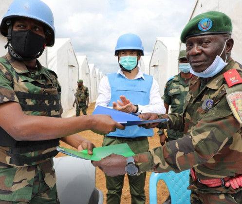 "I am delighted". These are the words used by the Sokola 1 operations commander, General Bertin Mputela, upon receiving the Kididiwe camp on Saturday November 20, 2021 from one of MONUSCO's deputy force commanders, General John Tchaeka. “I am very happy with the accommodation provided for my troops. It's a great site. MONUSCO helped us to put up the tents for the troops and for the operations”, confides General Mputela.