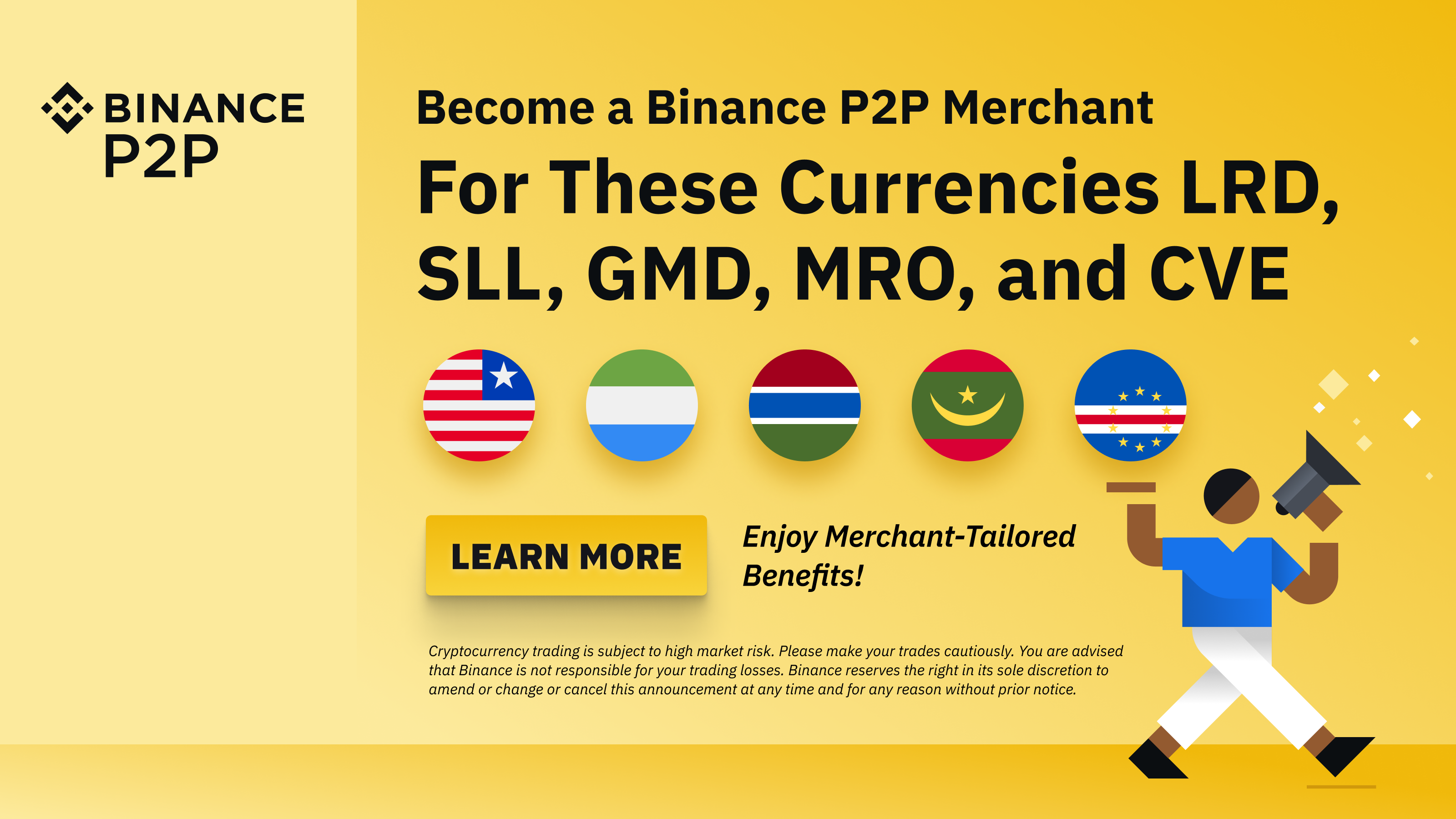 Grâce à Binance P2P, les utilisateurs africains du Libéria, de Sierra Leone, de Gambie, de Mauritanie et du Cap-Vert peuvent effectuer des transactions en cryptomonnaies ; Devenez « marchand » sur Binance P2P, les inscriptions sont ouvertes !