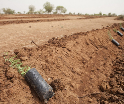 • De jeunes plants prêts à être mis en terre dans un sol préparé grâce à une charrue Delfino à Djibo, au Burkina Faso. ©FAO/Giulio Napolitano