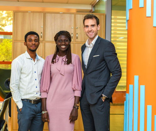 • From left to right Great Nwankire Esther Fatunase Manuel Murrenhoff in the new Bühler Nigeria office in Lagos