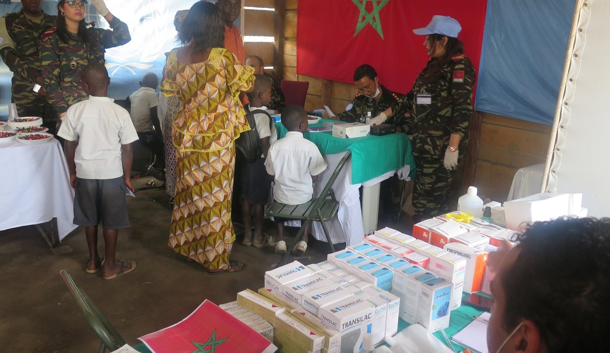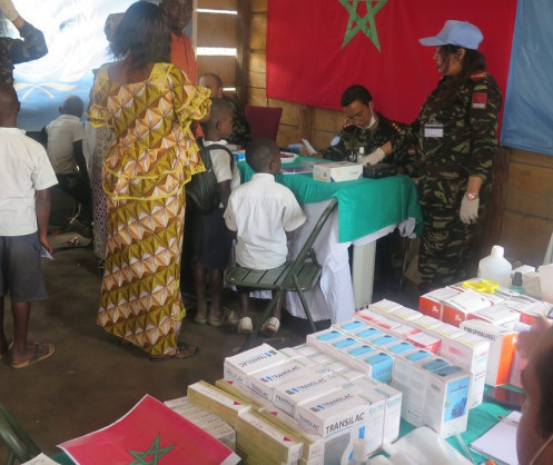 Dans le cadre des activités civilo-militaires de la MONUSCO, le contingent marocain de la Force a organisé ce mercredi 8 janvier 2020 des consultations médicales gratuites au Complexe scolaire Sainte Cécile à Bunia. Une centaine d’écoliers de cet établissement (sur les 220 qu’il compte) ont pu ainsi bénéficier gratuitement de consultations médicales, avec prescription et administration de traitements en fonction des résultats des examens. Les consultations portent sur des examens physiques, avec prise de constantes (poids, taille, tension, et température) ; en cas de fièvre, un test rapide de malaria est fait, ainsi que celui de la glycémie ou encore de la saturation en oxygène. Parmi les autres examens dont bénéficient gratuitement ces écoliers, il y a ceux de la gorge, des oreilles, des conjonctives... Parmi les pathologies diagnostiquées, indique le médecin-Capitaine Benali Saad, on retrouve principalement des gastro-entérites, angines, otites, mycoses, ou encore du paludisme.