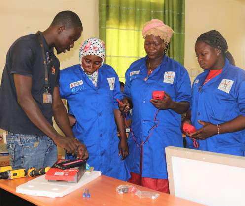 • The solar grandmothers from Burkina Faso during training on assembling a complete solar kit