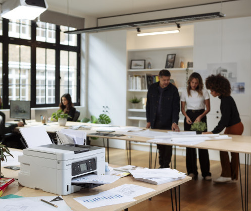 Featuring 4-colour pigment ink, both models are ideal for high-quality business prints on a variety of media types. Canon exclusively developed pigment inks to print with crisp and easily readable black text, with highly visible colour text and graphics – alongside colour reproduction contrast improvements over previous MAXIFY GX models. The all-pigment inks also resist bleeding and blurring, so documents can be highlighted and shared with confidence that they’ll be smudge-free and professional looking.