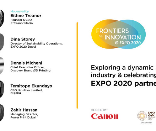 Taking place on September 27th , 2021, live on the Canon EMEA LinkedIn page (https://bit.ly/3EAKS4A). The event will feature an exciting panel of industry experts, including Dina Storey - Director of Sustainability Operations, Expo 2020 Dubai, Dennis Micheni – Chief Executive Officer, Discover Brands3D Printing, Temitope Ekundayo, CEO, Printivo Limited, Nigeria and Zahir Hassan Managing Director, Power Print Dubai.