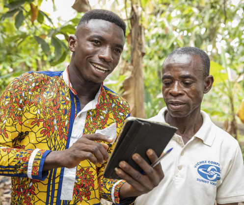 Notre aventure vers une chaîne d'approvisionnement numérique du cacao plus durable est en cours. À mesure que la technologie évolue, nos capacités numériques évoluent également, ce qui a ouvert des portes à de nouvelles opportunités et à de nouveaux services, pour apporter une valeur durable aux planteurs, aux communautés et à l'environnement.