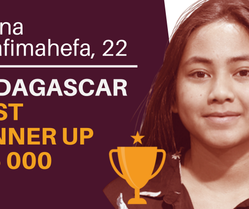 The first runner up, Matina Razafimahefa, is the Founder of Sayna (www.Sayna.io), an innovative EdTech venture. Her business sources, trains, and produces highly equipped young Africans in industry-specific digital skills. Since its inception, the venture has expanded its training to Comoros, Ivory Coast, Benin, and Senegal. To date, Sayna has placed 80 percent of its students in the global IT marketplace.