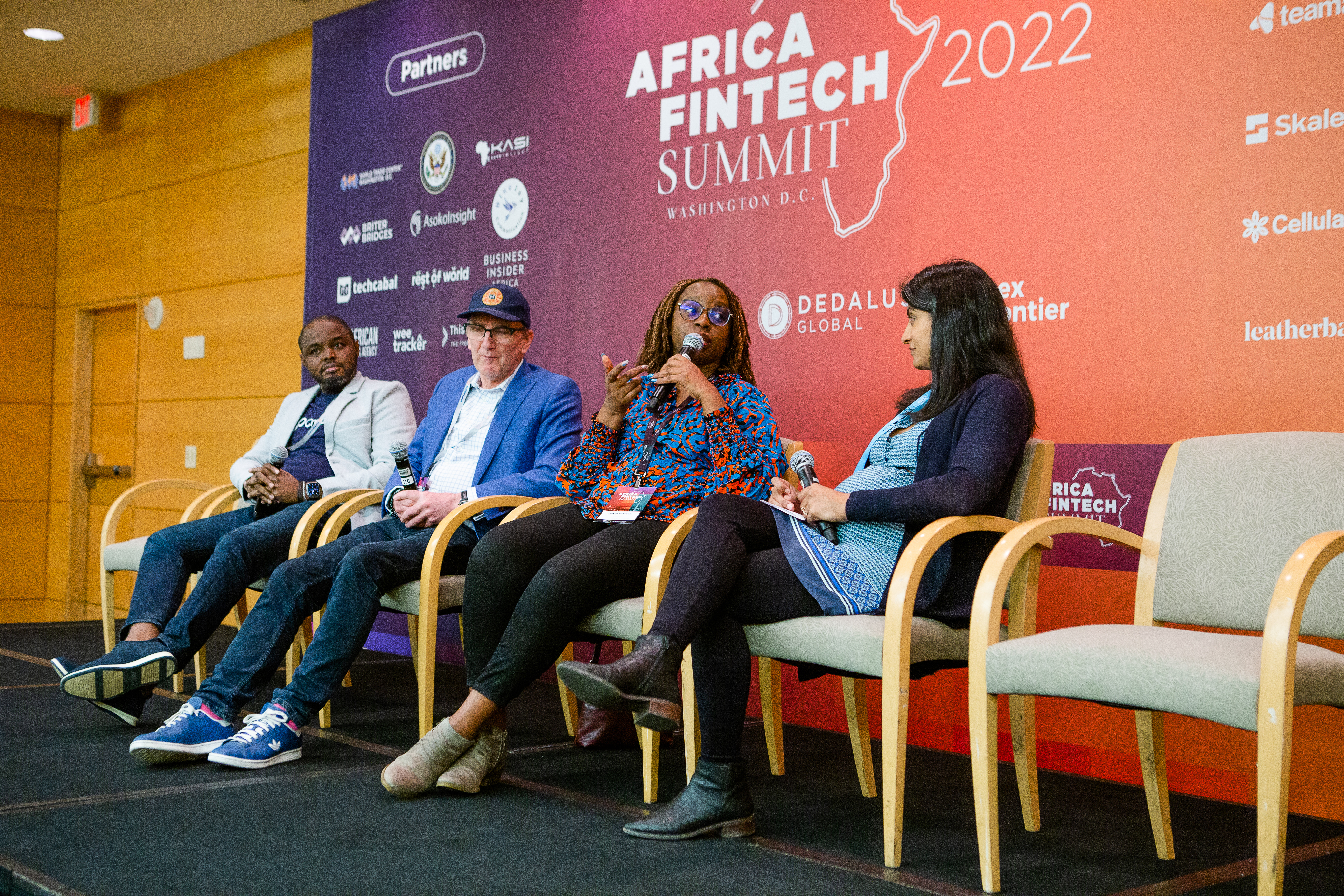 • De gauche à droite : Omosalewa "O" Adeyemi, responsable mondial des partenariats et de l'expansion, Flutterwave, Emeka Ibe, vice-présidente de TeamApt, Akshay Grover, PDG du groupe, Cellulant, Aubrey Hruby, cofondateur, Tofino Capital