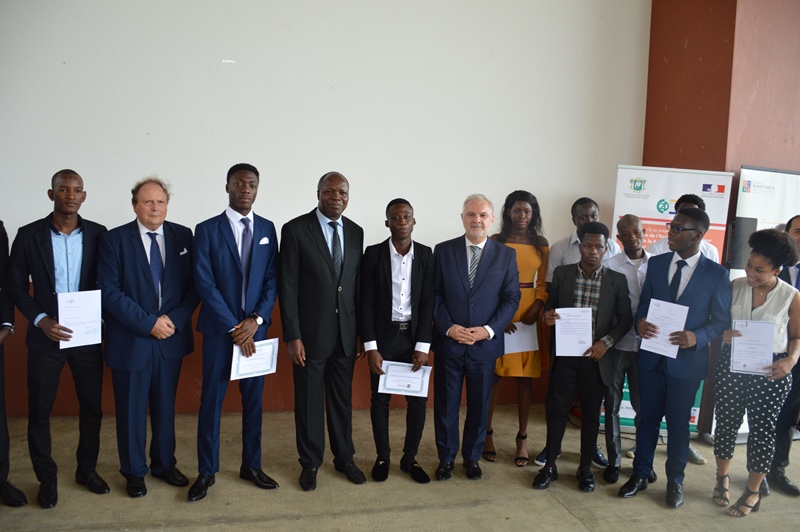 En présence du Ministre de l’Enseignement supérieure et de la recherche, l’Ambassadeur de France en Côte d’Ivoire a participé à une cérémonie de remise des bourses à 10 étudiants de la classe préparatoire Grenoble INP du lycée Blaise Pascal.