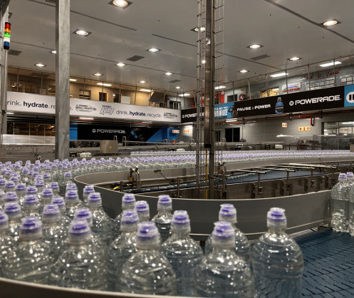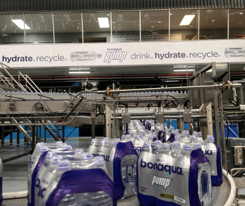 The high-speed production line marks a South African first, producing Bonaqua Pump Still 750ml and Powerade 500ml packs with an innovative sports bottle cap