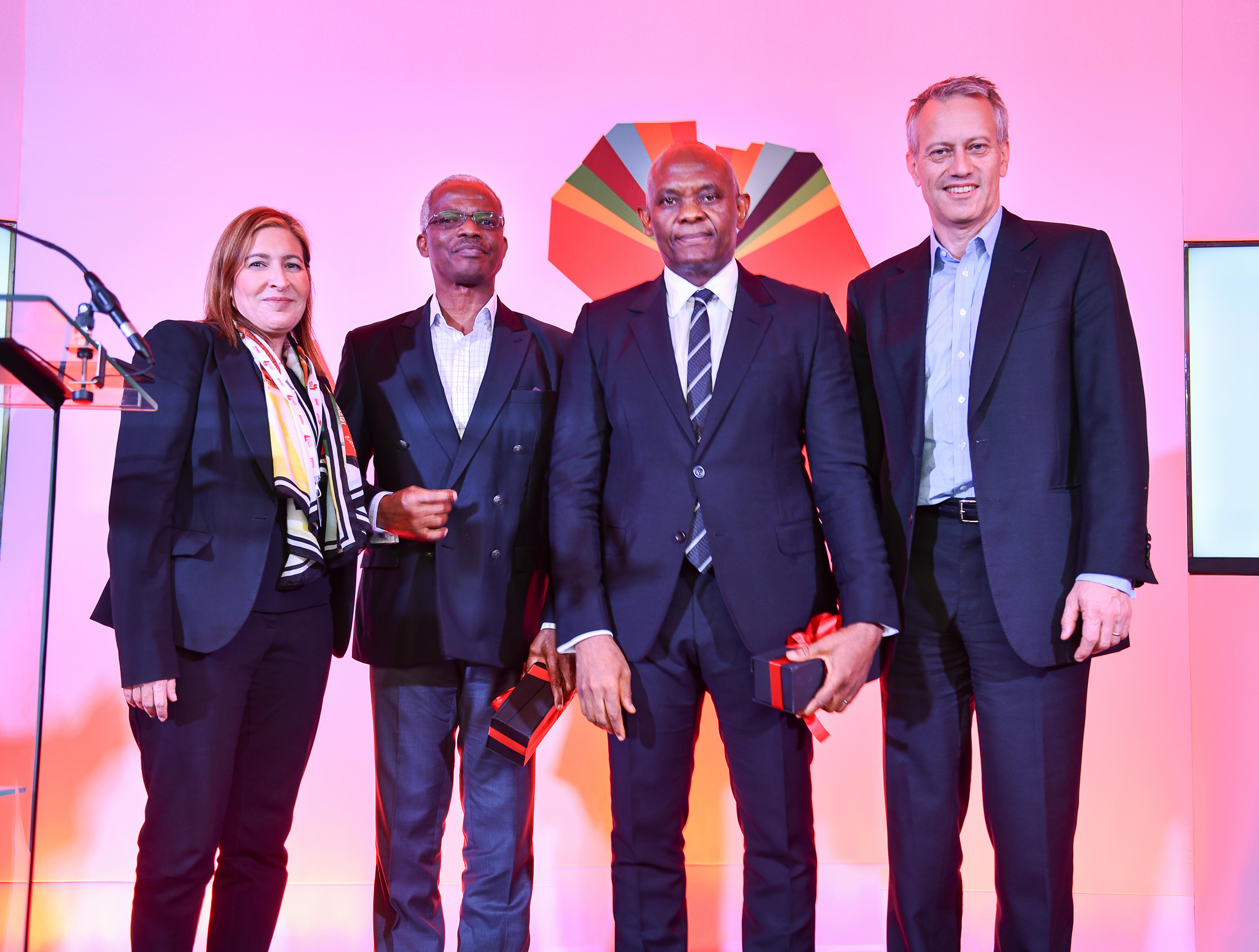 • Bea Perez, Premier vice-président et chef des communications, agent des relations publiques et de la durabilité, Coca-Cola Company; Doyin Salami, président du conseil consultatif de l'économie (FRN); Tony Elumelu, président du conseil, Heirs Holdings et James Quincey, PDG