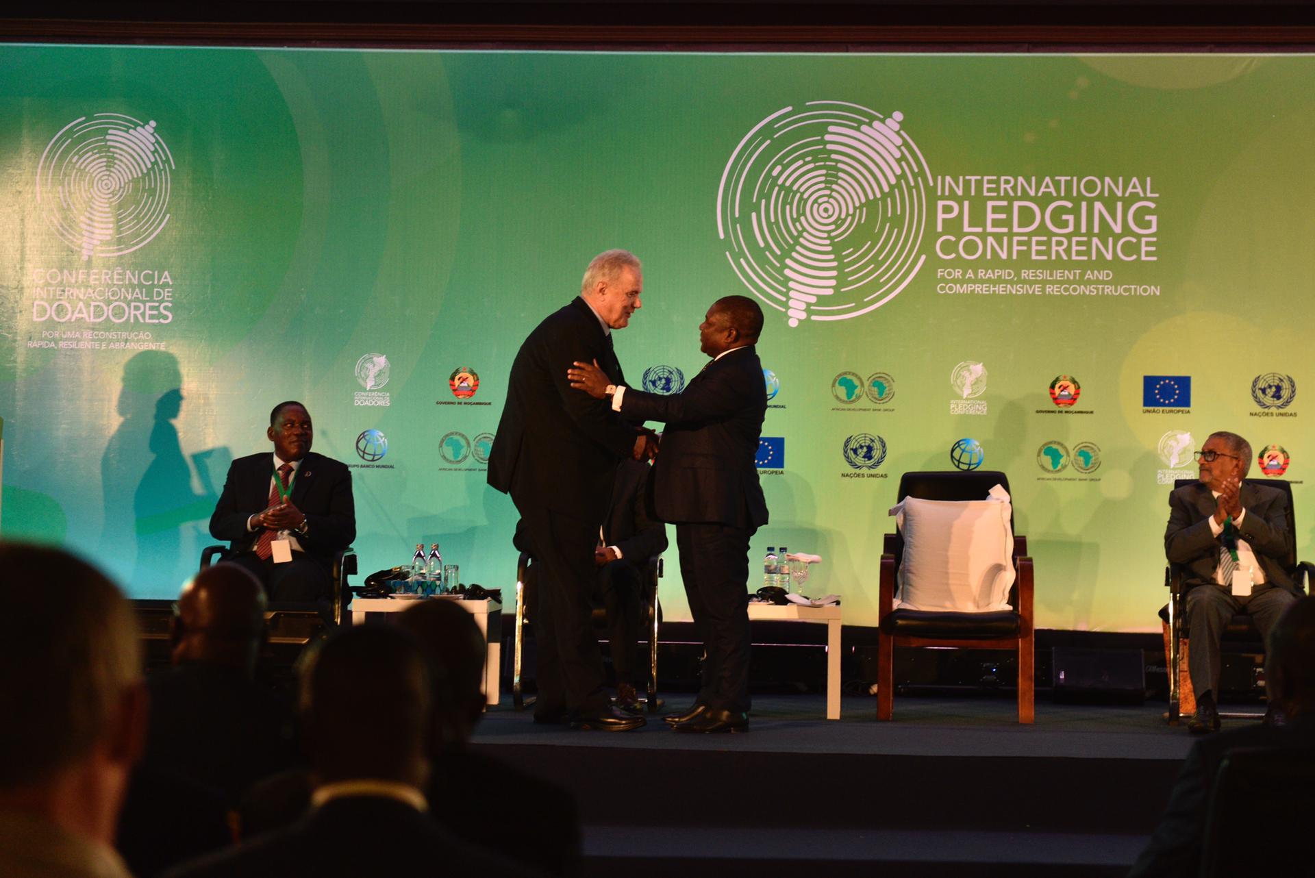 O processo da Avaliação das Necessidades Pós-Desastre para os processos de recuperação dos ciclones IDAI e Kenneth, culminou com uma Conferência Internacional de Doadores na Beira, entre 31 de Maio e 1 de Junho também financeiramente apoiada pela UE juntamente com o BM e a ONU. Esta Conferência teve a participação de mais de 700 participantes entre os quais o Presidente Nyusi, o Primeiro Ministro e vários Ministros da República de Moçambique. A comunidade internacional esteve representada ao mais alto nível para a maioria dos países e o sector privado e a Sociedade Civil também estiveram representados.