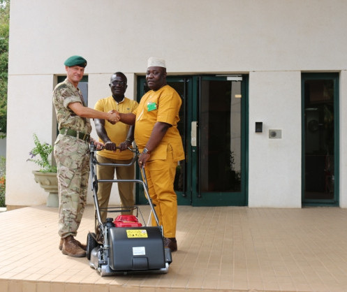 Lt Col Simon Westlake RM, Defence Adviser presented equipment to assist with the maintenance of the Commonwealth War Graves Commission Cemetery in Accra