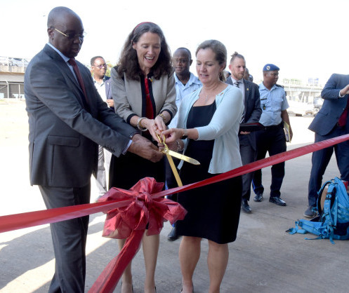 • L’Ambassadeur des Etats-Unis près le Bénin Patricia Mahoney, la Sous-Secrétaire d’Etat Adjointe chargée des Affaires Ouest-Africaines Whitney Baird, et le Ministre de l’Intérieur Sacca Lafia, inaugurent le hangar à bateaux de l’USPFM