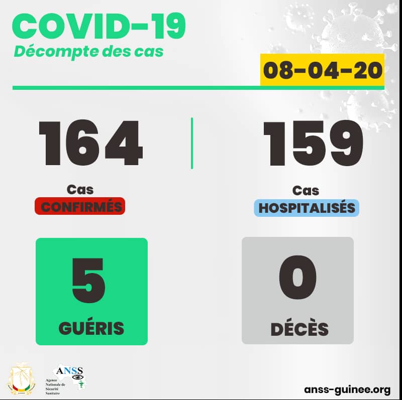 • Coronavirus – Guinée : COVID-19 Décompte des cas 08-04-20