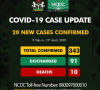 As at 09:50 pm 13th April there are 343 confirmed cases of #COVID19 reported in Nigeria. 91 have been discharged with 10 deaths.