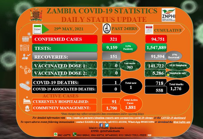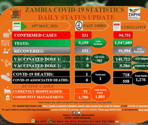 Coronavirus – Zambia: COVID-19 Daily Status Update (29 May 2021)