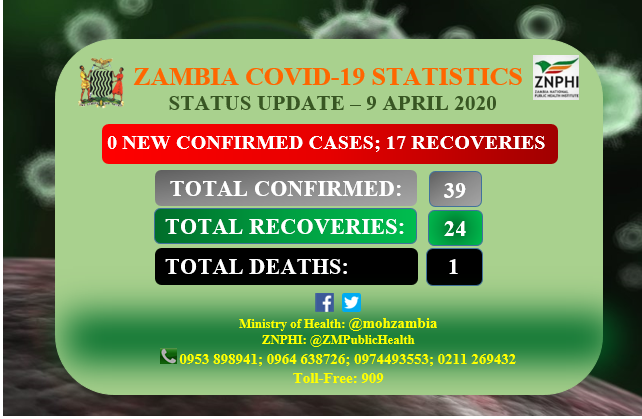 Coronavirus – Zambia: COVID-19 Status update – 9 April 2020