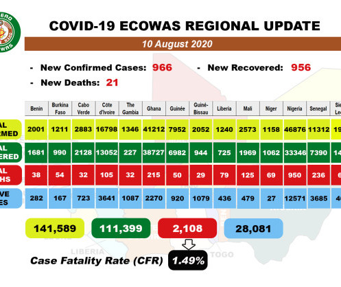 Coronavirus - Africa: COVID-19 ECOWAS Daily Update for August 10th, 2020