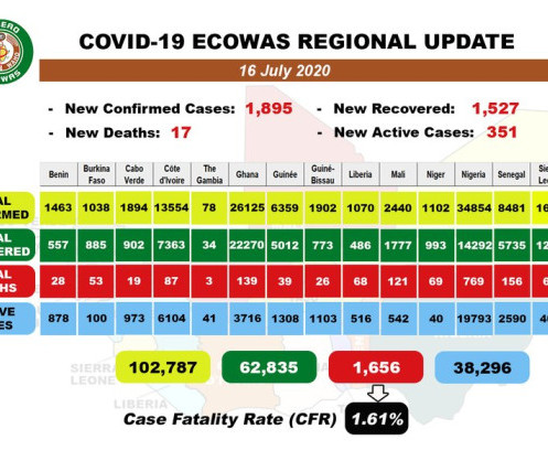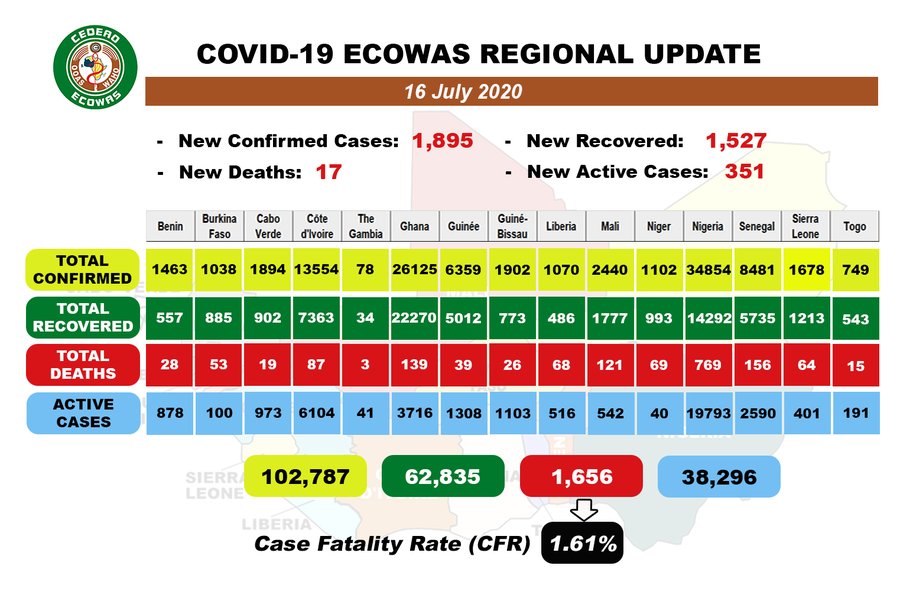 Coronavirus - Africa: COVID-19 ECOWAS Daily Update for July 16, 2020