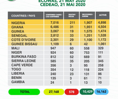 Coronavirus - Africa: COVID-19 highlights in the ECOWAS region as at 21st May, 2020