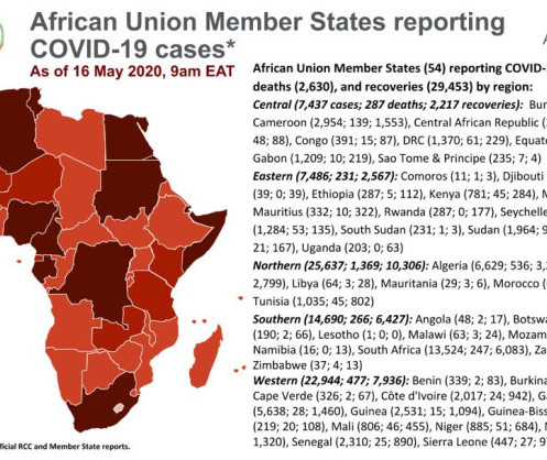 • Coronavirus - Afrique : Mise à jour COVID-19 (16 mai 2020, 9h00, heure de l'Afrique de l'Est)