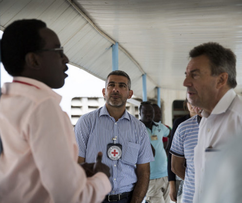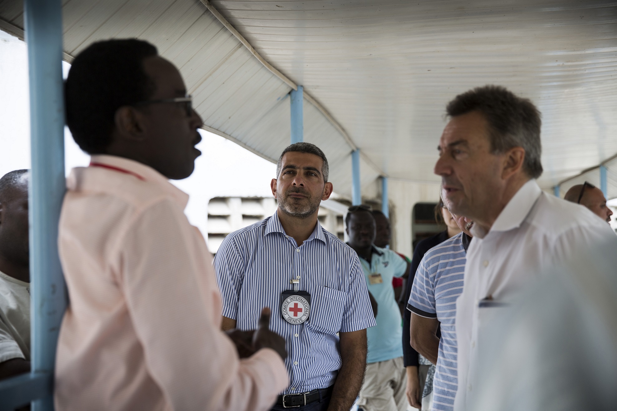 • Patrick Youssef, récemment nommé directeur régional du CICR pour l'Afrique, en visite dans un hôpital à Maiduguri, où le CICR prend en charge des personnes souffrant de traumatismes par suite du conflit qui sévit dans le nord-est du Nigéria.