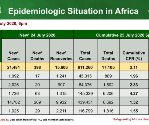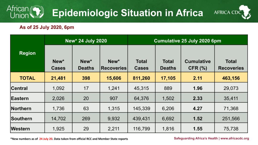 • Coronavirus - African Union Member States (55) reporting COVID-19 cases (811,260) deaths (17,105), and recoveries (463,156)