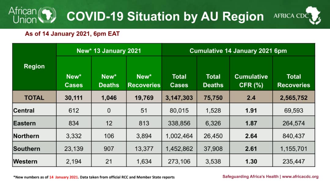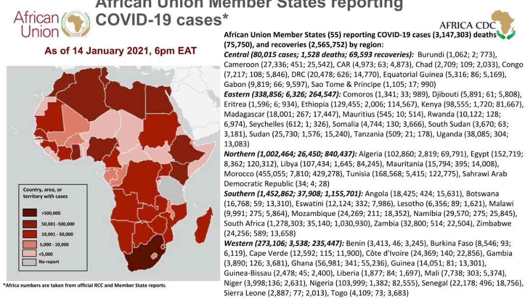 • Coronavirus: African Union Member States reporting COVID-19 cases as of 14 January 2021, 6 pm EAT (2)