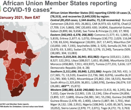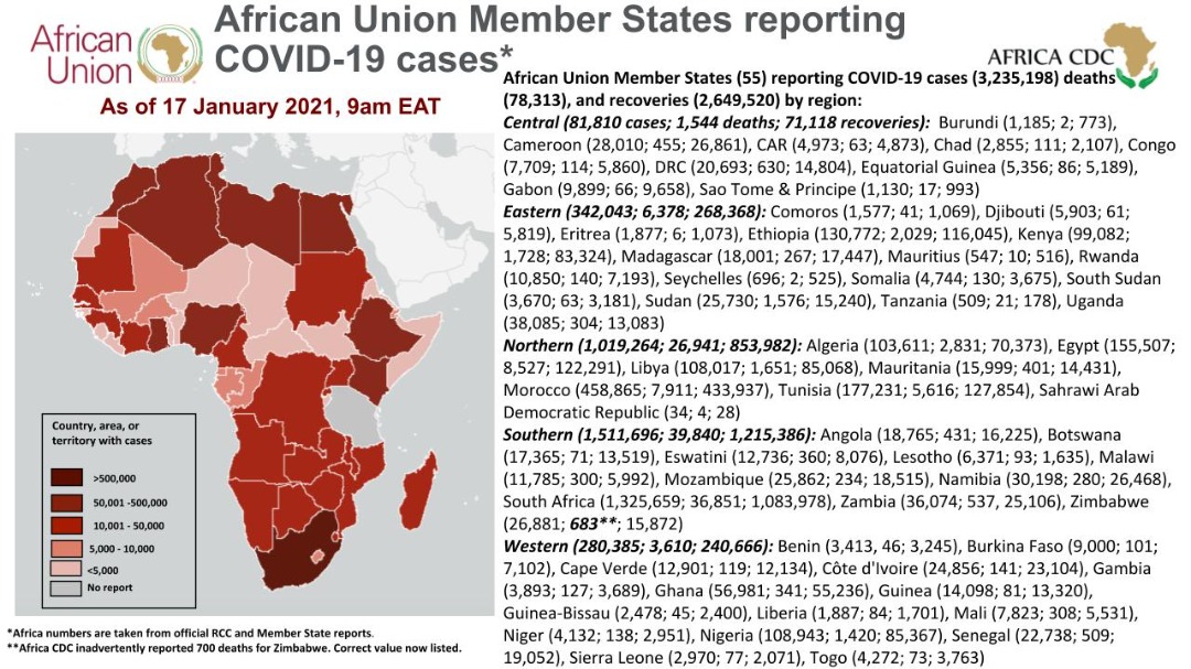 • Coronavirus: African Union Member States reporting COVID-19 cases as of 17 January 2021, 9 am EAT