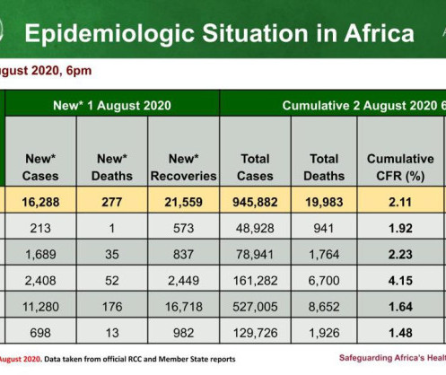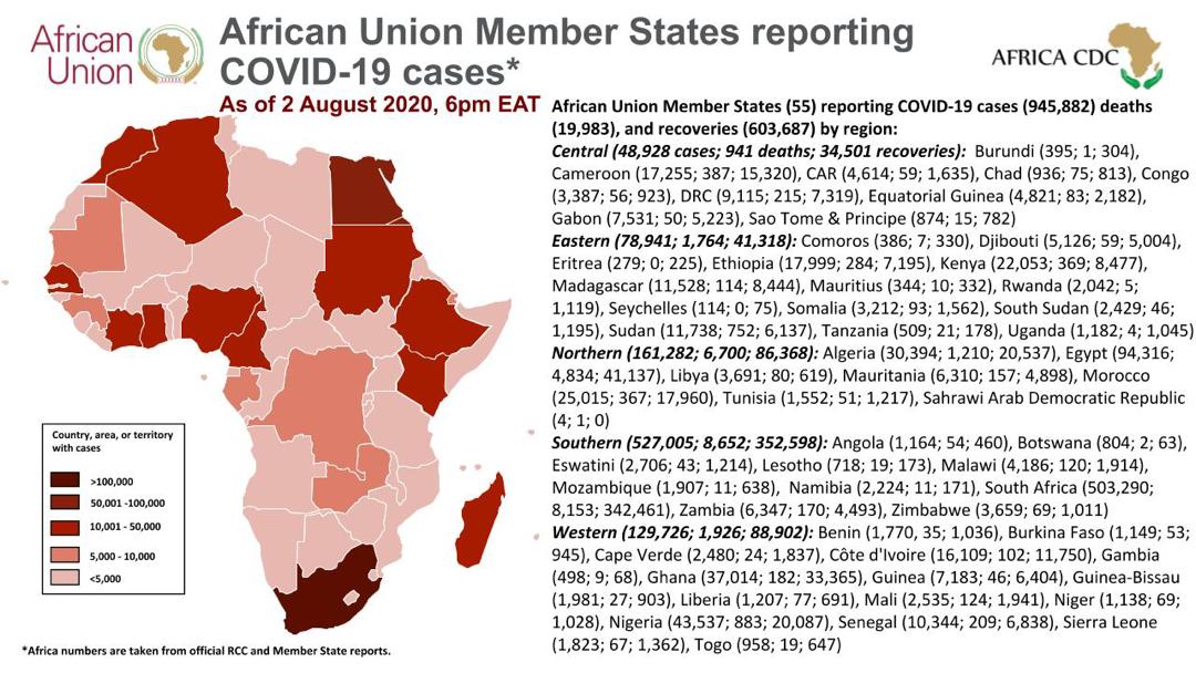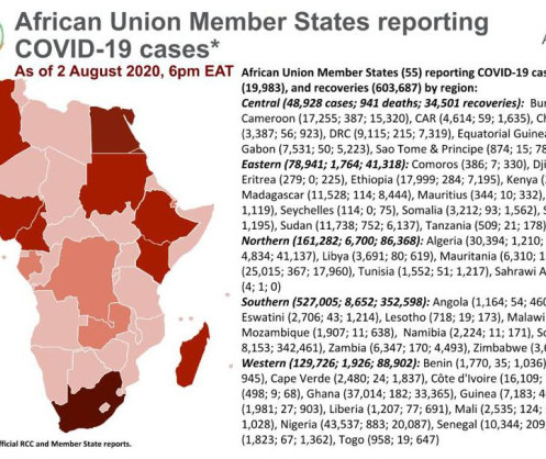 • Coronavirus: African Union Member States reporting COVID-19 cases as of 2 August 2020, 6 pm EAT (2)