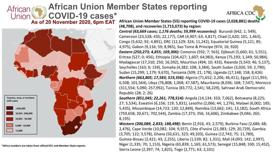 • Coronavirus: African Union Member States reporting COVID-19 cases as of 20 November 2020, 6 pm EAT (2)
