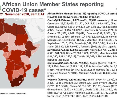 • Coronavirus: African Union Member States reporting COVID-19 cases as of 21 November 2020, 9 am EAT