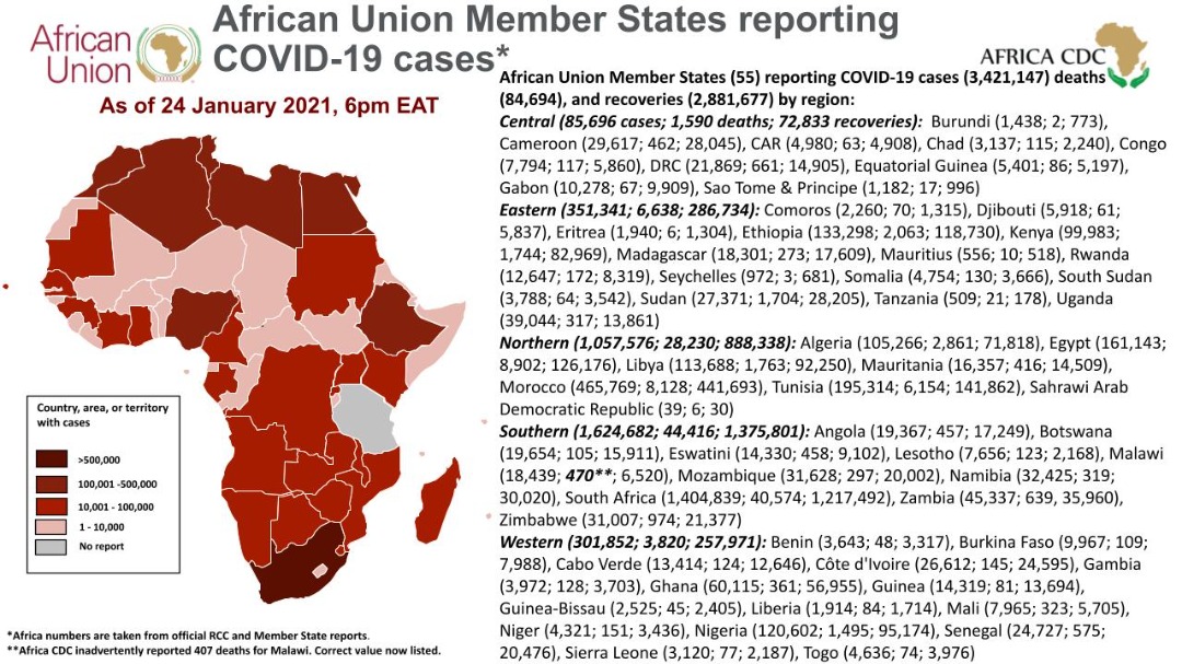 • Coronavirus: African Union Member States reporting COVID-19 cases as of 24 January 2021, 6 am EAT