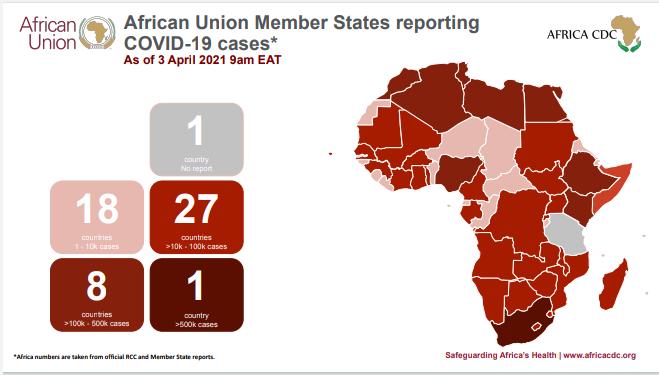 • Coronavirus: African Union Member States reporting COVID-19 cases as of 3 April 2021, 9 am EAT (1)